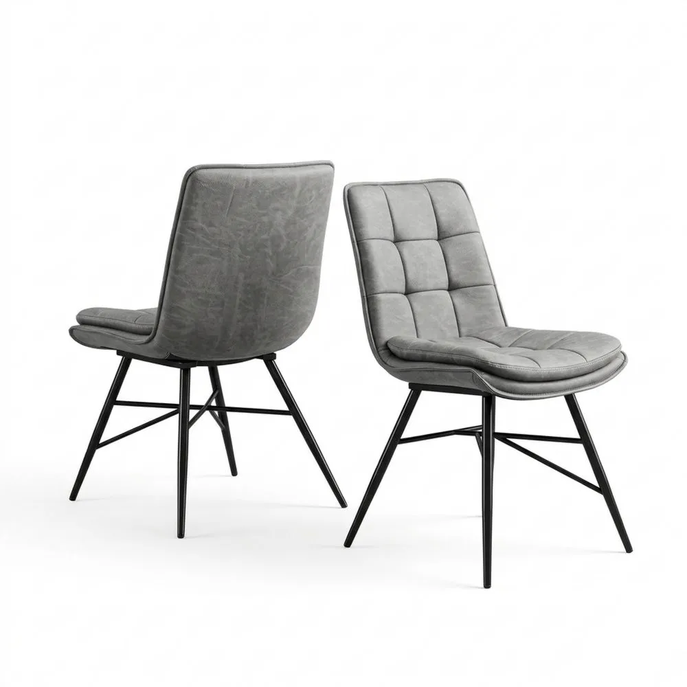 Conjunto de 2 sillas de comedor modernas sin brazos en cuero microfibra gris