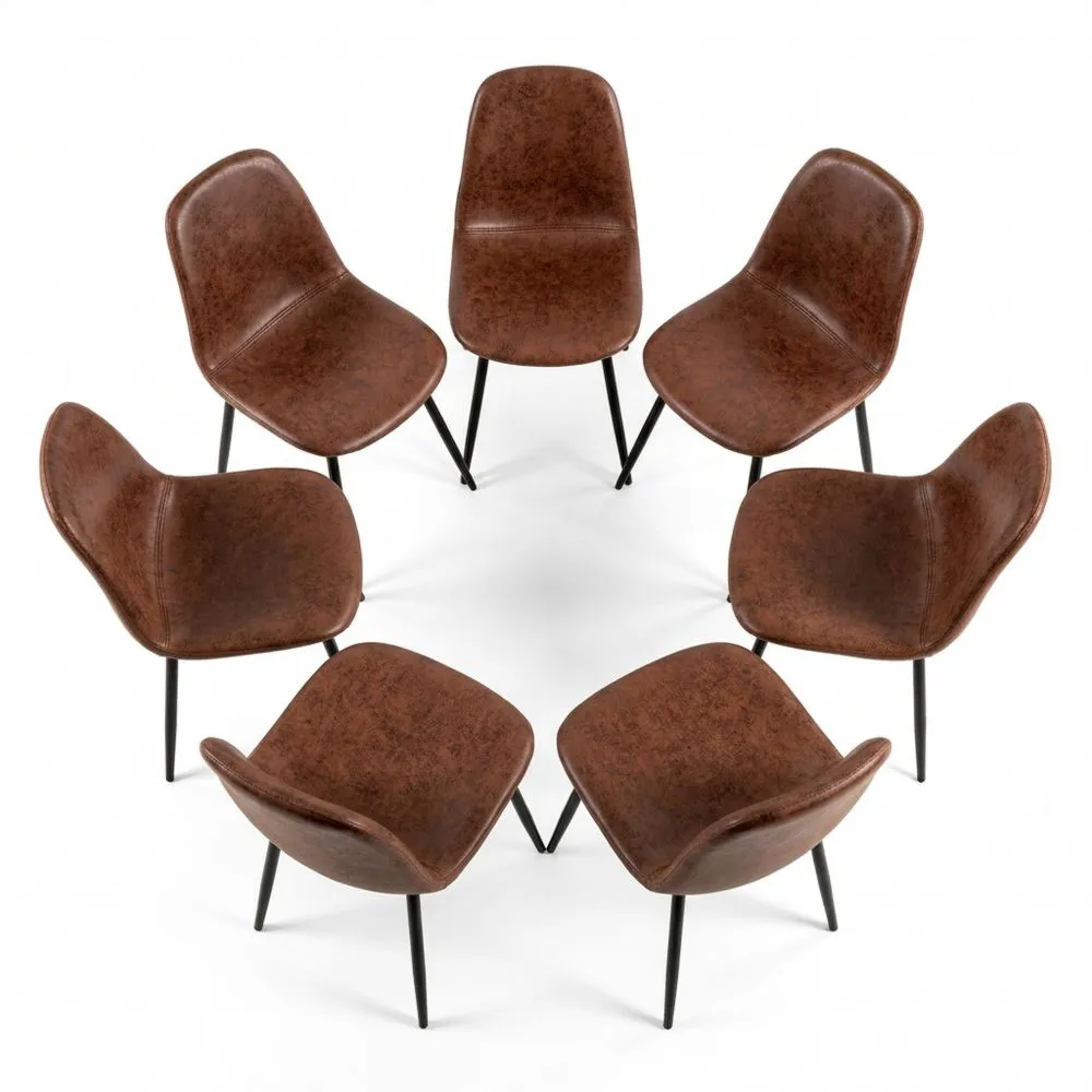 Conjunto de 6 sillas de cuero sintético negro para comedores amplios.