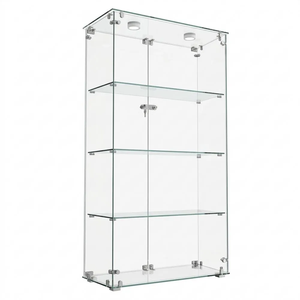Esta vitrina de cristal tiene vidrio templado y herrajes resistentes para garantizar su estabilidad. Es adecuada para almacenar tus colecciones de manera segura y visible. Las puertas de vidrio transparente ofrecen visibilidad para tus objetos. Esta vitrina de múltiples niveles permite mostrar una variedad de ítems desde trofeos y libros hasta colecciones y vino. Su diseño independiente cuenta con un mecanismo bloqueable para proteger tus objetos. El vidrio templado robusto asegura estabilidad, mientras los herrajes y un dispositivo anti-vuelco proporcionan seguridad adicional. Adecuada para el salón, la cocina o la oficina; esta vitrina es fácil de montar con las herramientas e instrucciones incluidas.