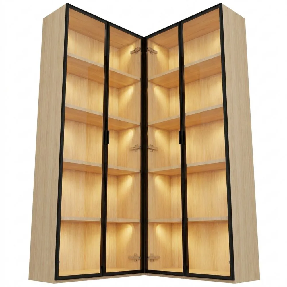 Cada compartimento está equipado con una barra de luz integrada, y la cálida luz amarilla mejora la presentación de tu colección.